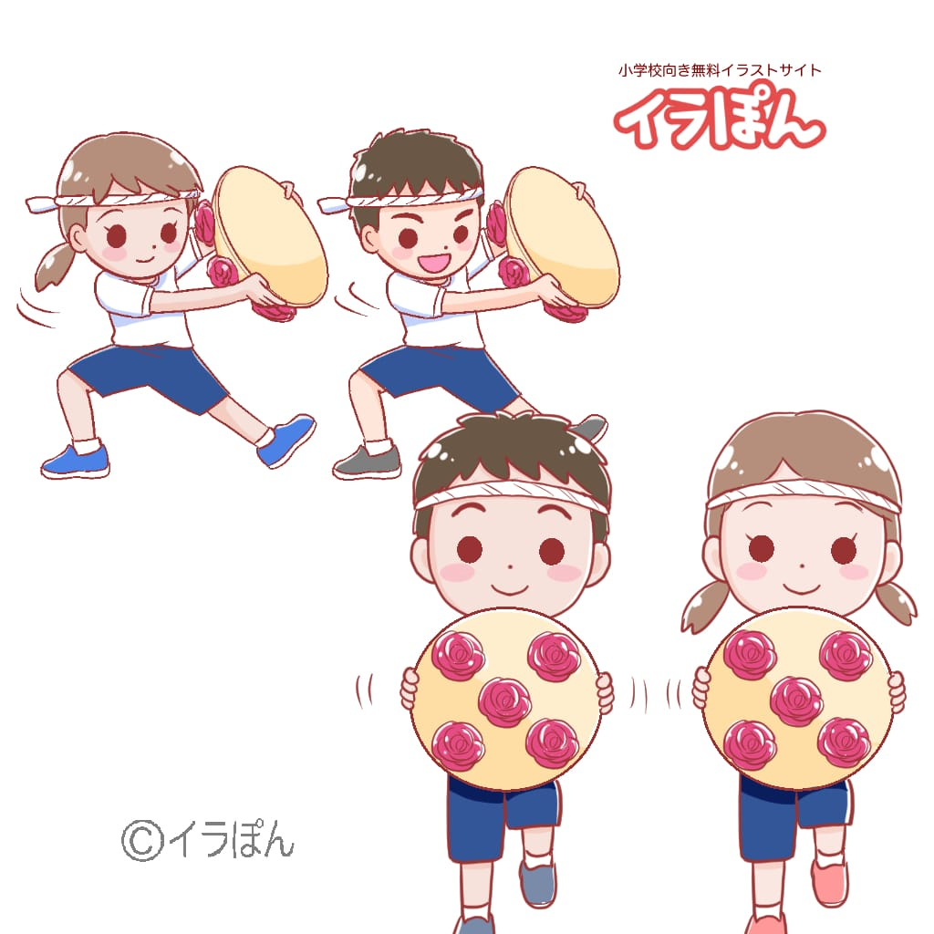 子どもが運動会で花笠踊りをしているイラストです