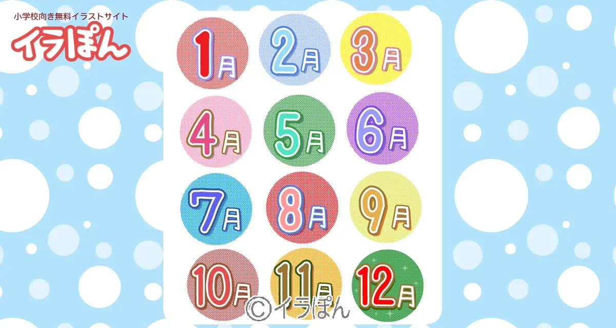 1月から12月までの1年間の月名の文字イラストです。
