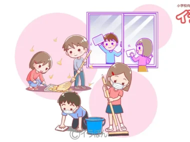色々な人たちが学校環境を整えているイラストです